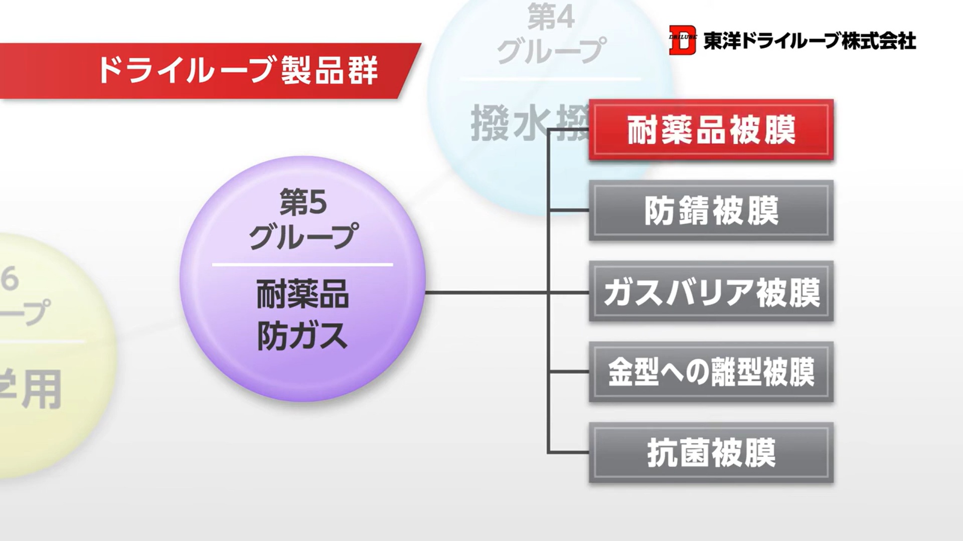 ドライルーブ製品群内での耐薬品・防ガス被膜の種類